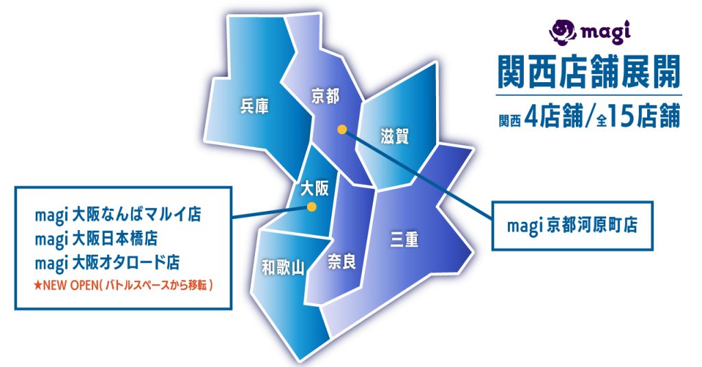 株式会社ジラフ(本社:東京都渋谷区、代表取締役:麻生 輝明)は、「magi大阪日本橋2号店バトルスペース」を閉店し、2025年11月下旬に「カードショップmagi大阪オタロード店」としてリニューアルオープンいたします。