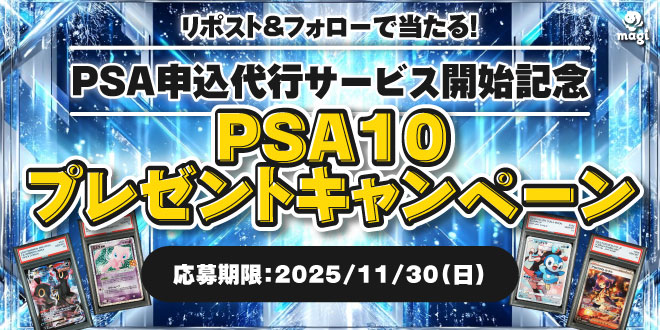 2025年11月20日(木)より、「カードショップmagiなんばマルイ店」「カードショップmagi横浜西口店」にてPSA申込代行サービスを開始いたします。